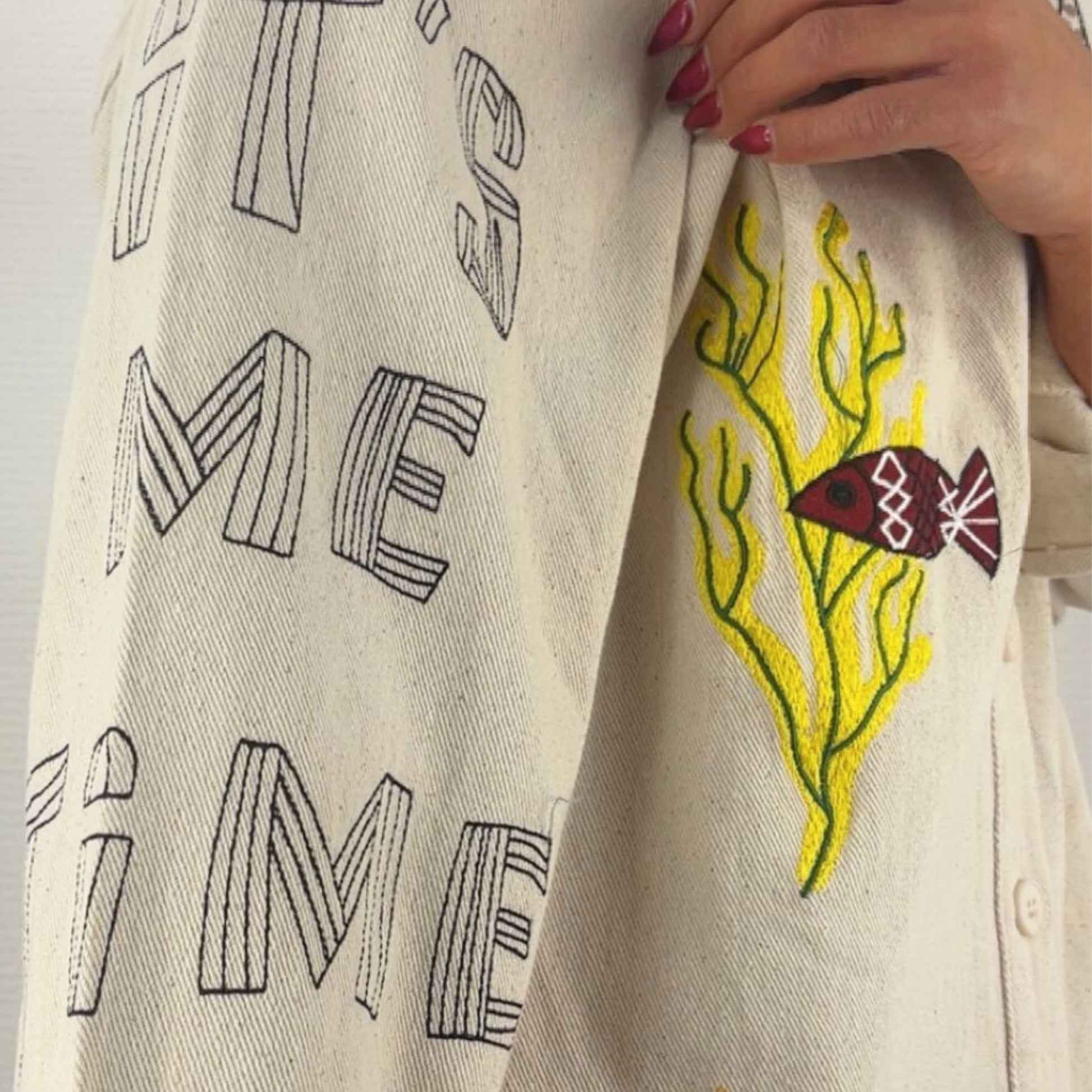 Außergewöhnliche Jeansjacke im Blusenstil mit aufwendigen, liebevoll gestickten Details. Jedes Motiv macht dieses Teil zu einem echten Hingucker – kreativ, individuell und mit ganz viel Charakter.
