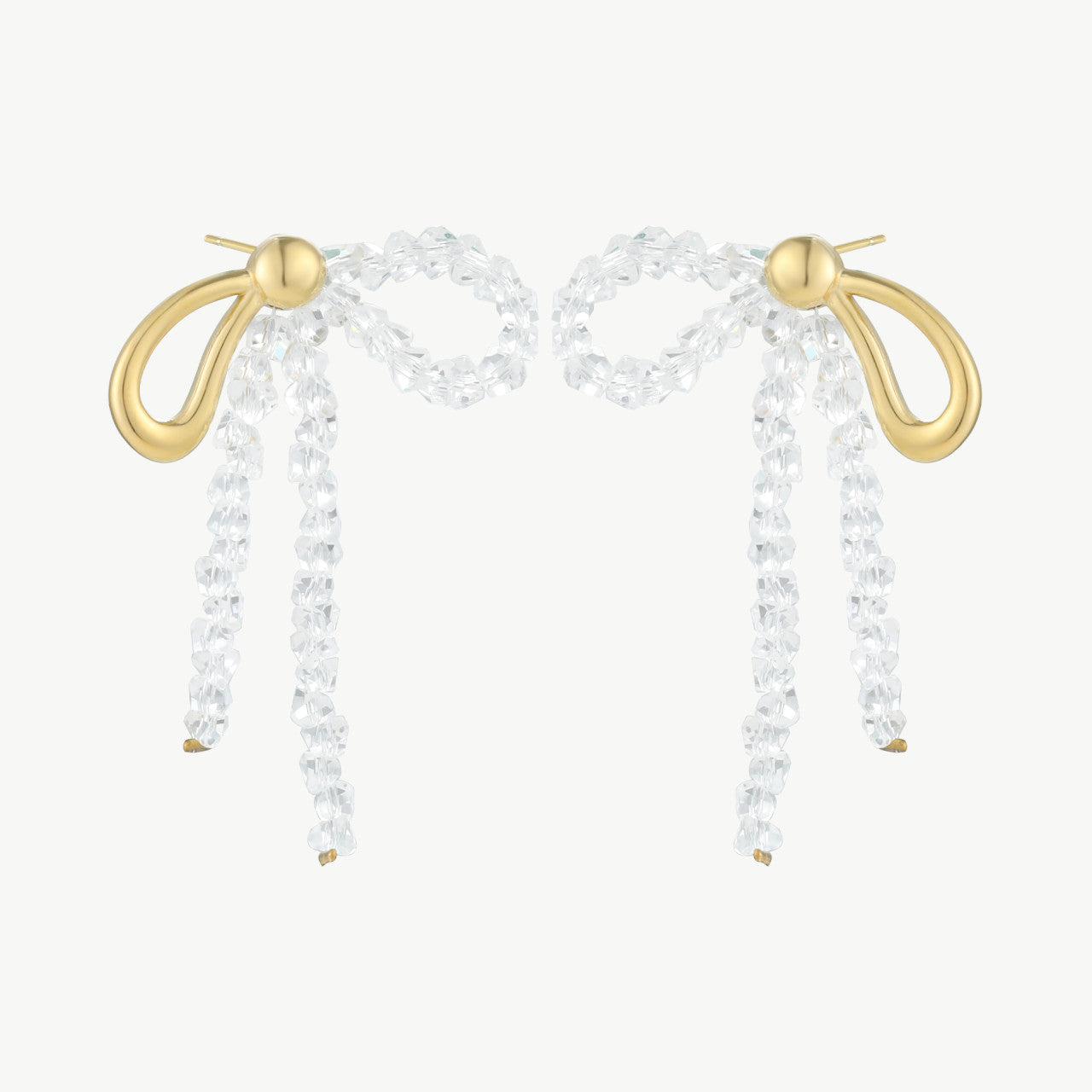 eine zarte Schleifenform aus funkelnden Glasperlen, kombiniert mit einem modernen goldenen Element – klassisch, feminin und voller Leichtigkeit.