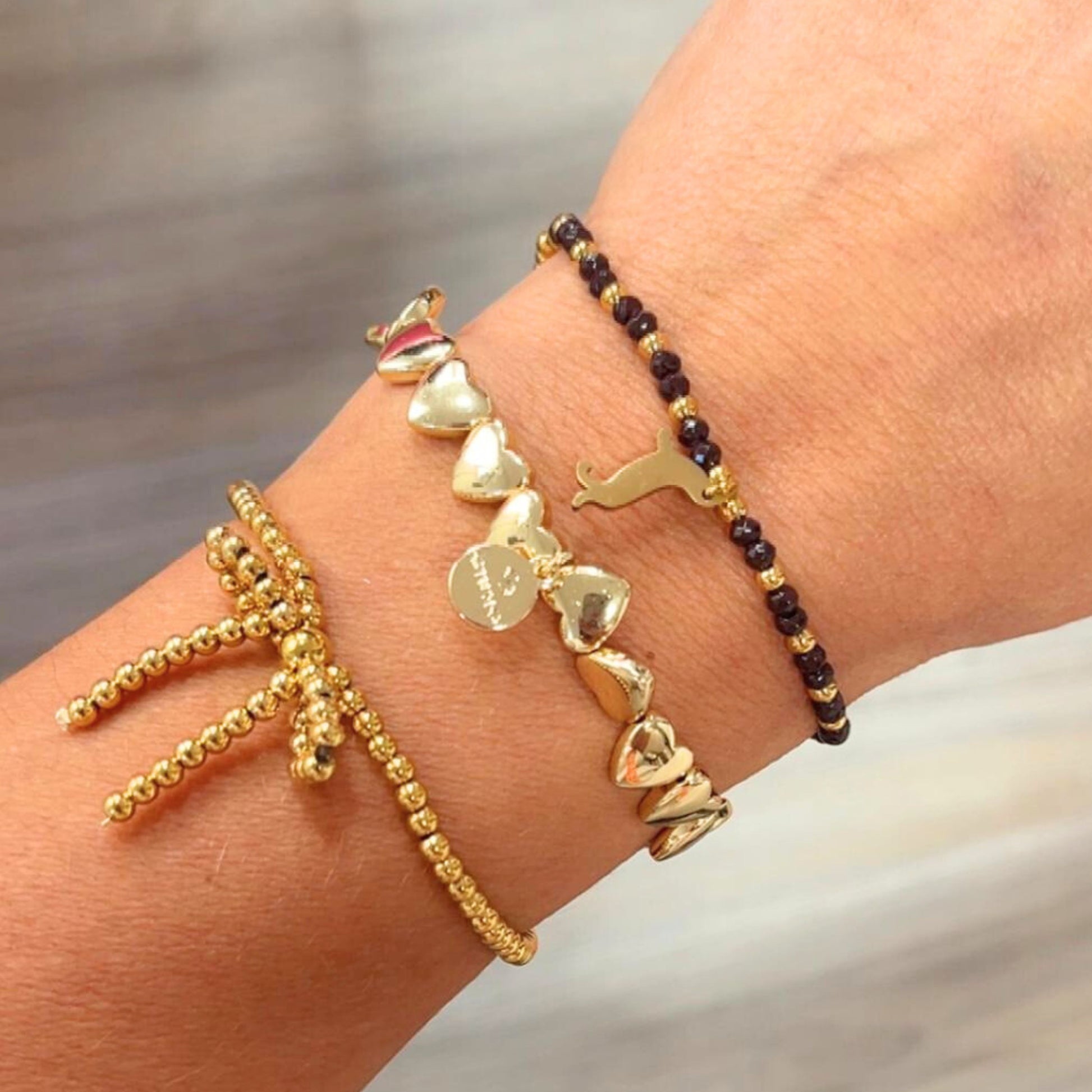 💛 Herz-Armband (vergoldet) – zarte Herzperlen, liebevolles Charm
