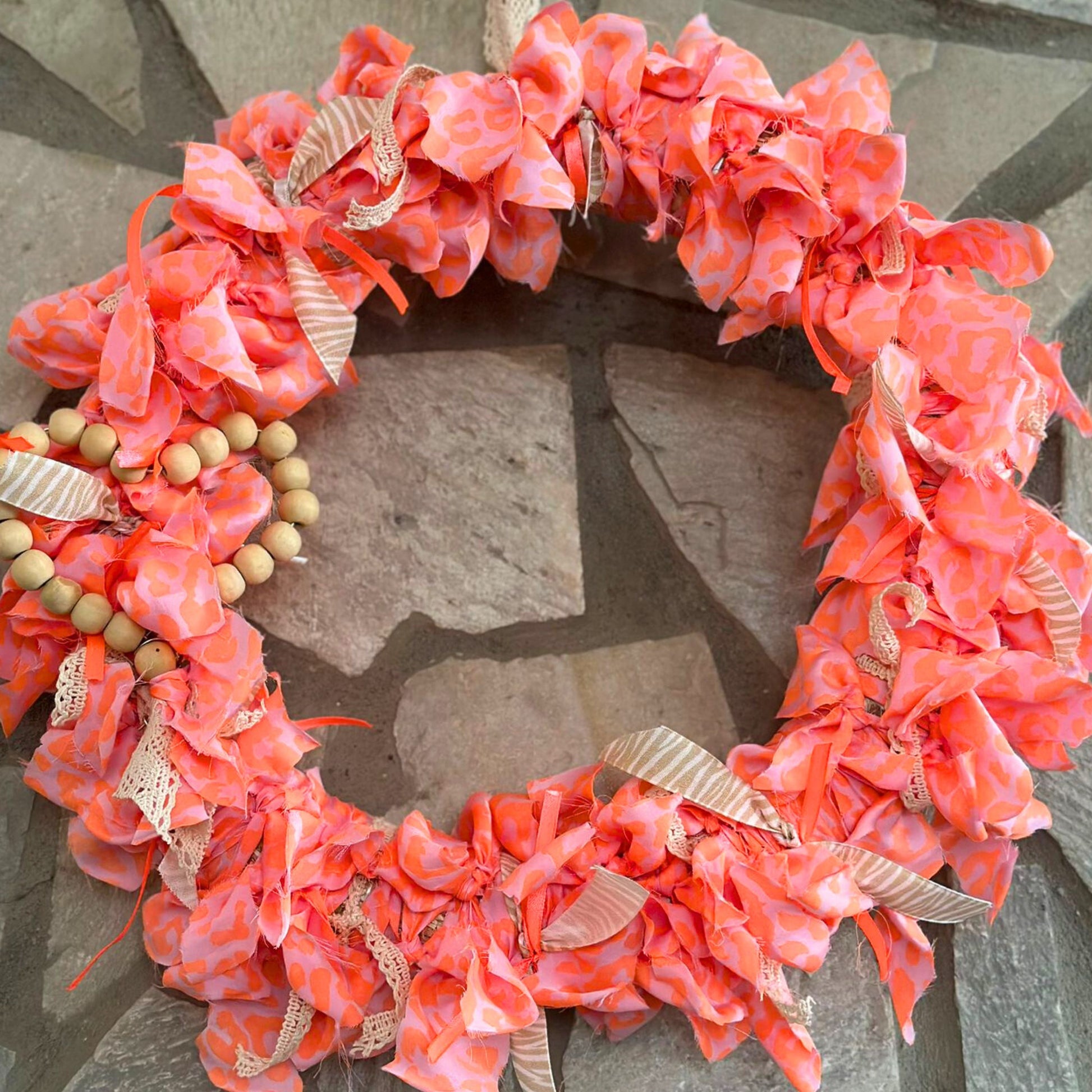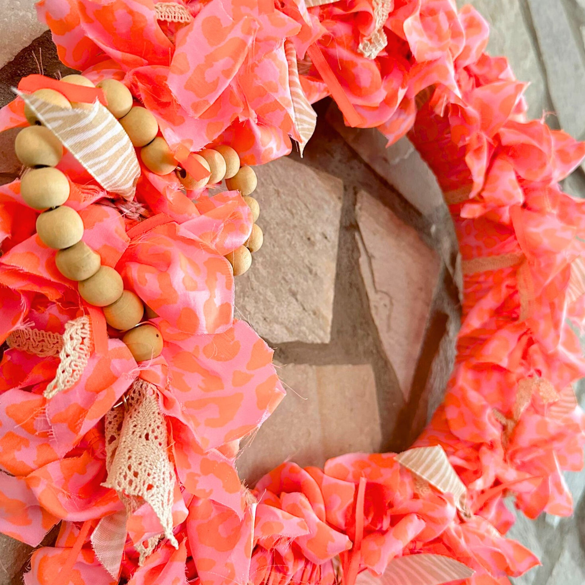 Mit seinen leuchtenden Farben, Stoffdetails und Holzperlen ist er ein fröhlicher Hingucker für Tür, Wand oder Fenster.
