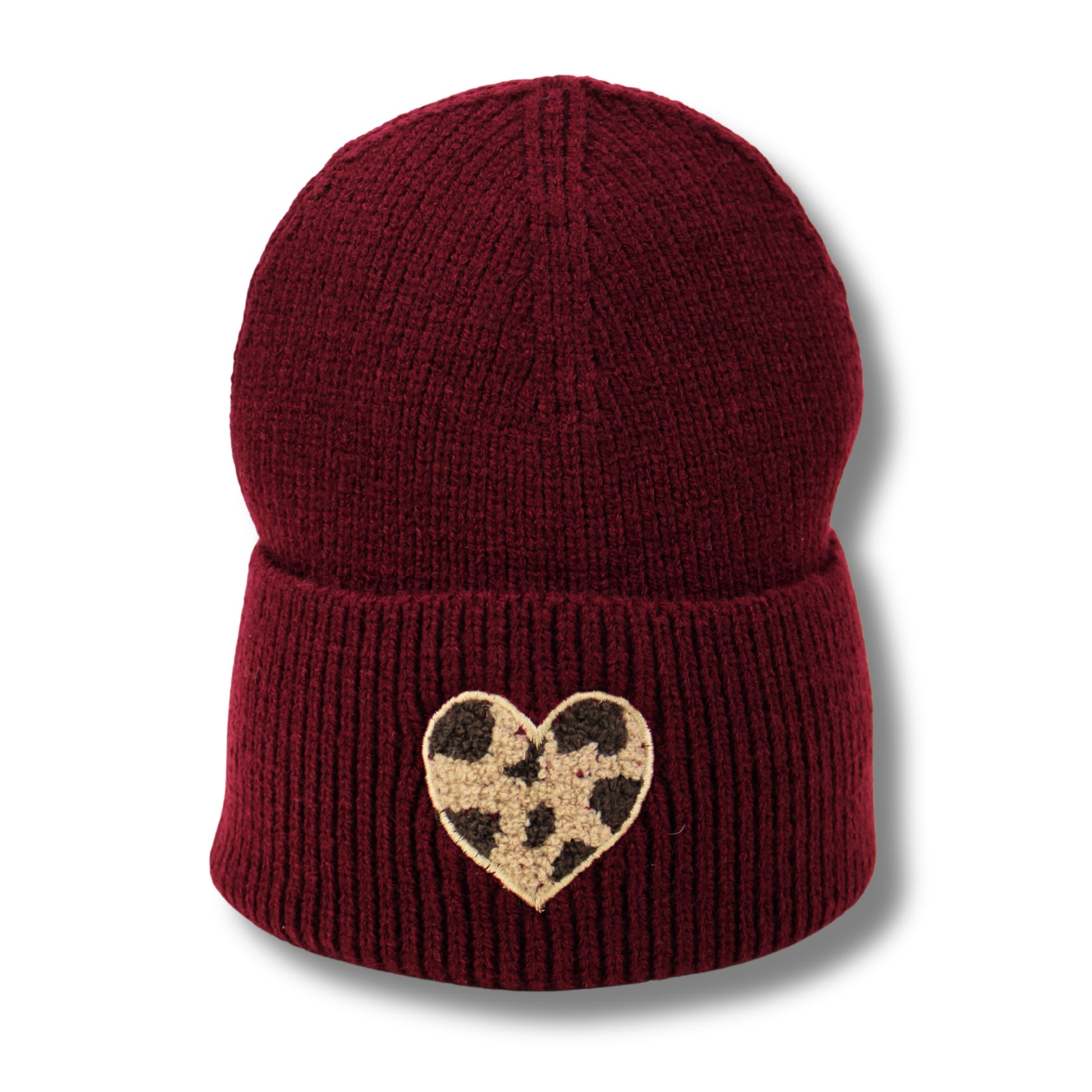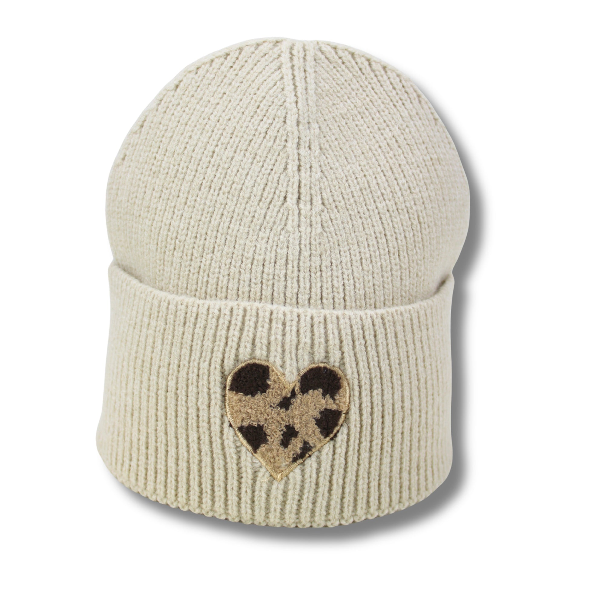 Das liebevoll gestickte Herz mit Leo-Muster macht jede Mütze zu einem kleinen Herzensstück – perfekt zum Verschenken oder Selbstbehalten.