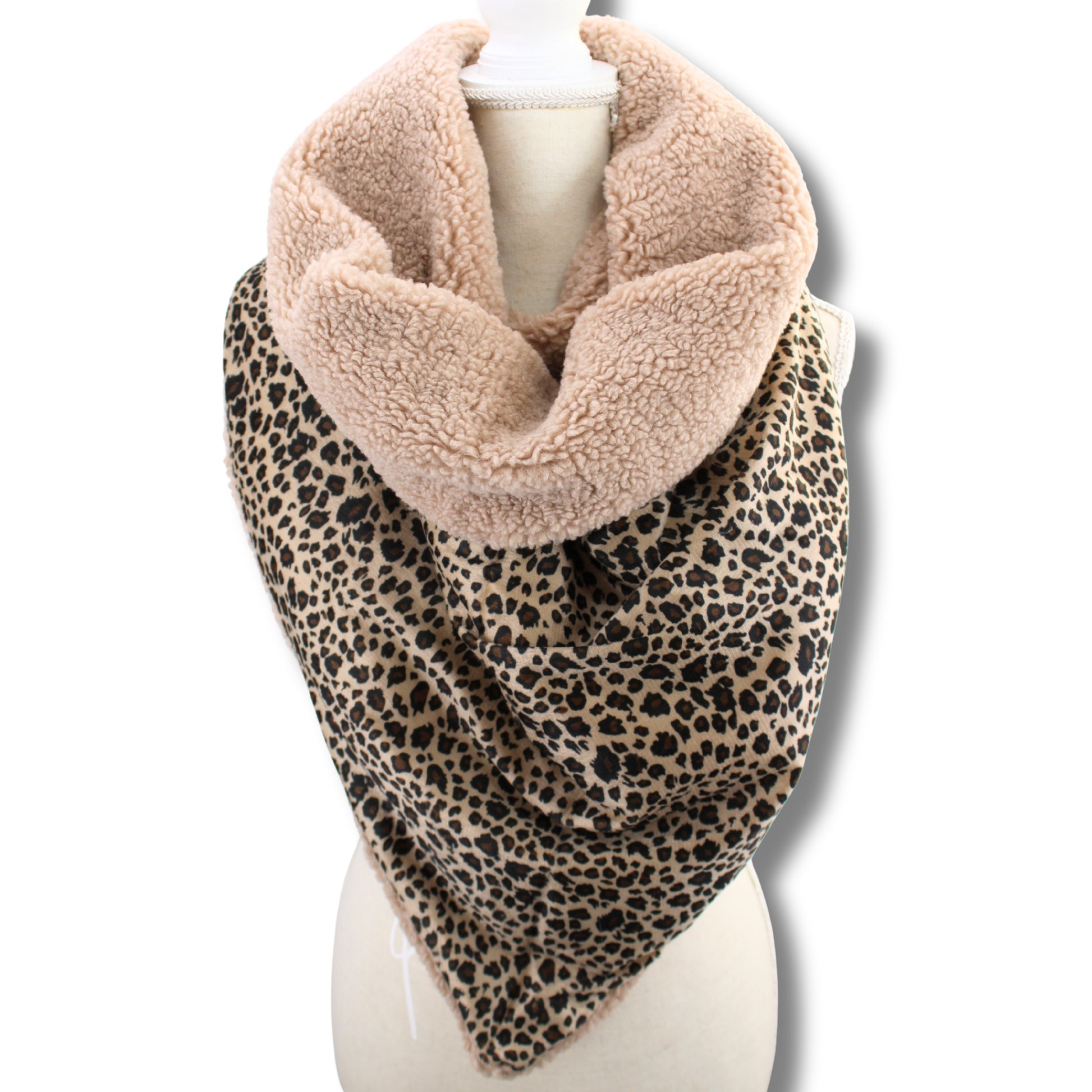 Kuscheliger Dreiecksschal – Leopard & Teddyfell