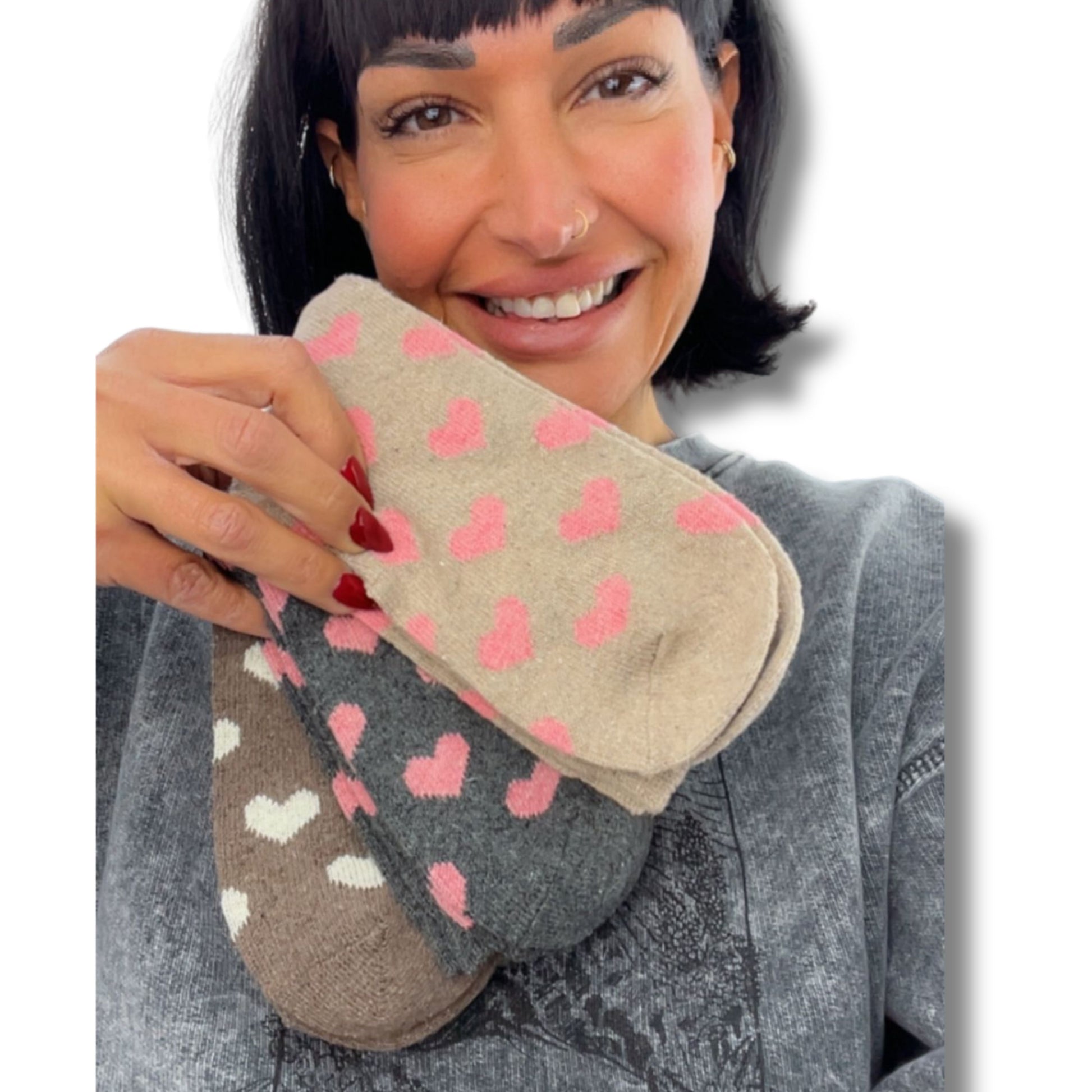 Diese süßen Herz-Socken sind nicht nur ein Hingucker, sondern auch wunderbar weich und wärmend – perfekt für kalte Tage, zum Einkuscheln auf der Couch oder als kleines liebevolles Geschenk.