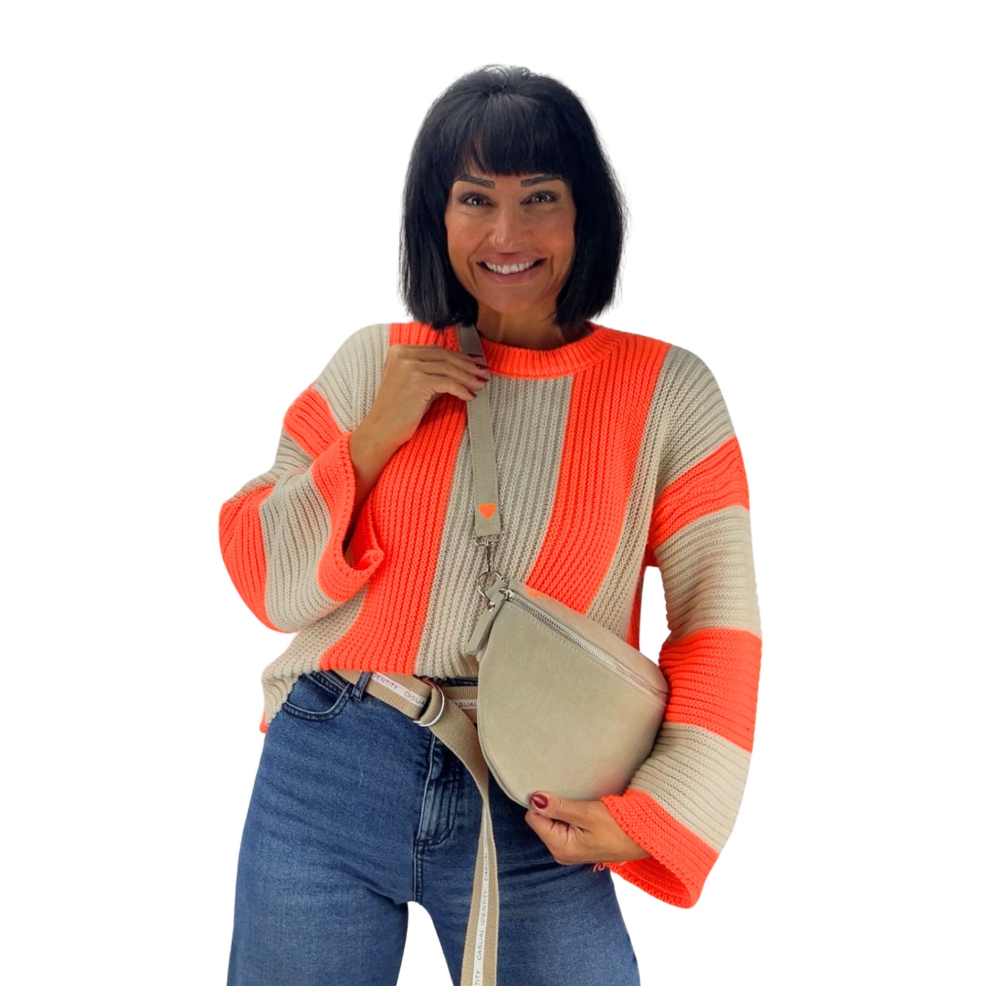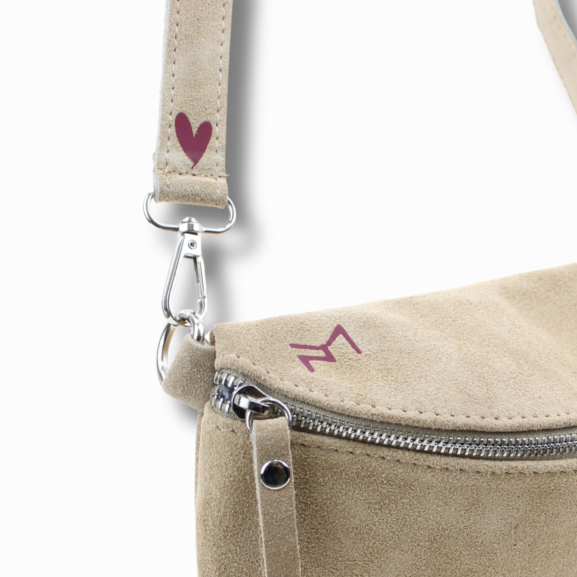 Mit feinen Details wie dem Herz am Gurt und dem zarten Logo begleitet sie dich jeden Tag mit Wärme & Stil.